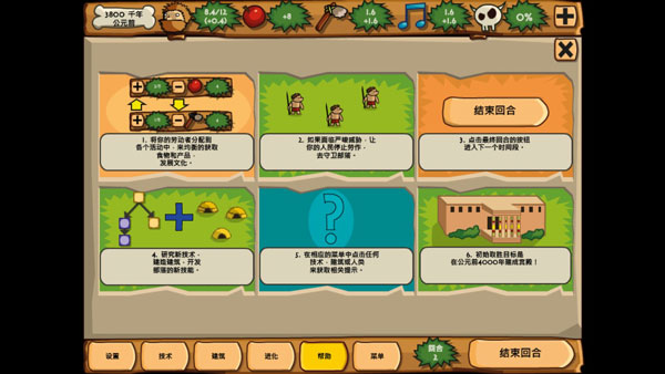 在这款游戏中你扮演的是一个幕后策略家,你要做的就是通过自己的分配一步步的把自己的部落扩大,进步科学,壮大自己控制的部落,防御敌国一步步成为霸主。