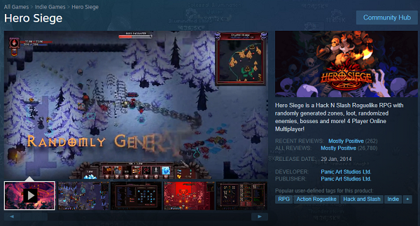 在steam上搜索hero siege就可以找到攻城英雄这款游戏了。